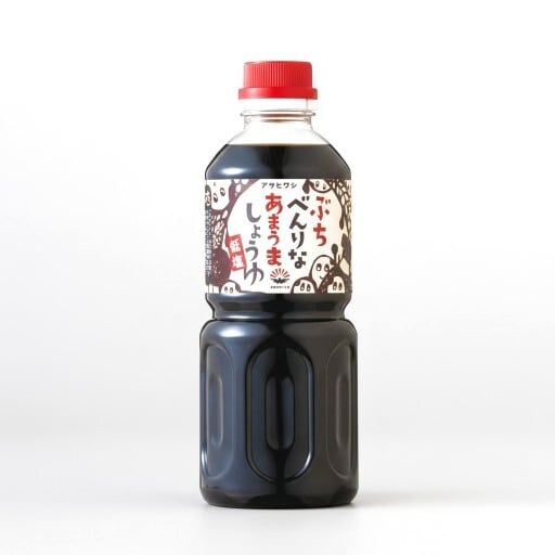 あまくちしょうゆ1ℓと内容(味、成分)は同じもので、500mℓのPET容器に詰めたものです。